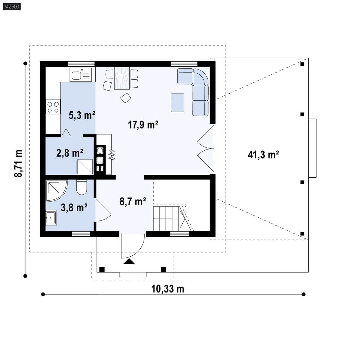 Projekt Z57 D to przytulny i „zdrowy” dom, zaprojektowany w technologii drewnianej. Dom może być wykorzystany jako całoroczny lub letniskowy. Mimo bardzo małej powierzchni może w nim wypocząć kilkuosobowa rodzina, oraz ich goście. Atutem jest duża weranda sprzyjająca letniemu lenistwu.