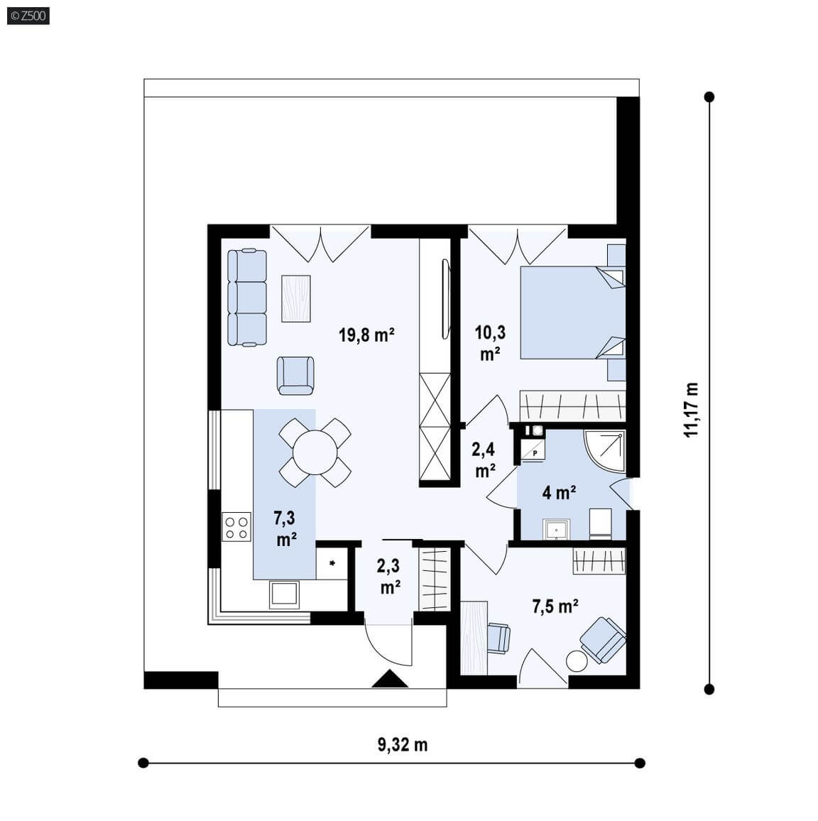 Prezentowany projekt dekowany jest dla: młodych ludzi, którzy wolą własną przestrzeń zamiast mieszkania w bloku; rodzin, których dzieci „wyfrunęły” z gniazda; oraz sprawdzi się również jako domek letniskowy.